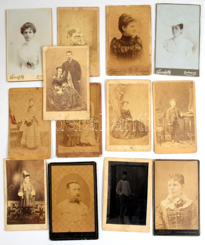 cca 1865-1910 13 db keményhátú fotó vegyes műtermekből, sérülésekkel, 10,5×6,5 cm