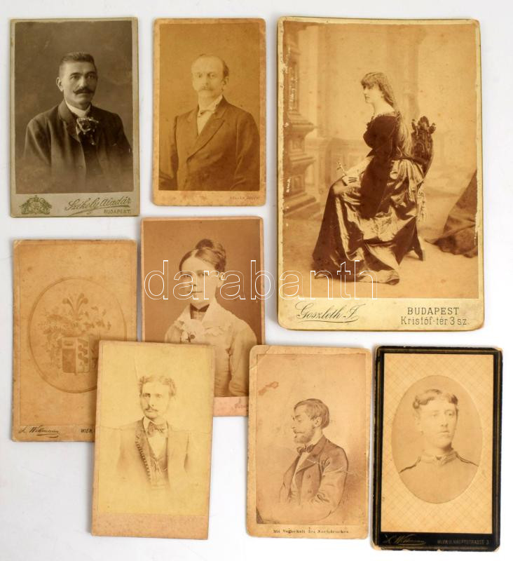 cca 1865-1910 8 db keményhátú fotó vegyes műtermekből, sérülésekkel, 10,5×6,5 cm és 16,5×10,5 cm