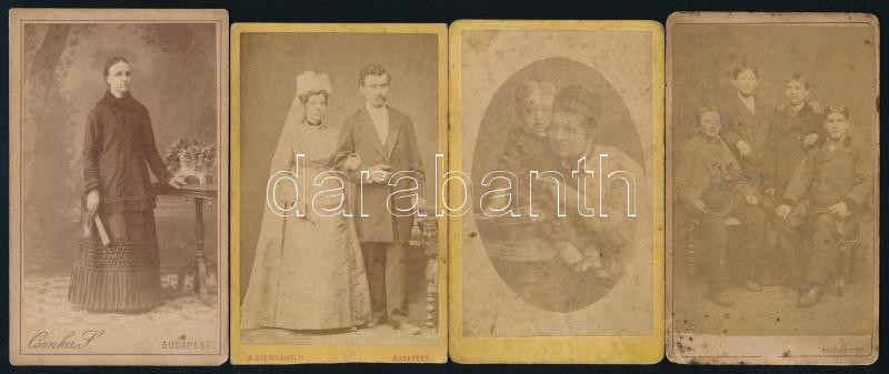 cca 1870-1880 4 db vizitkártya különféle budapesti műtermekből (Christ Anna, Csonka Simon, Szerdahelyi, Kalmár), változó állapotban