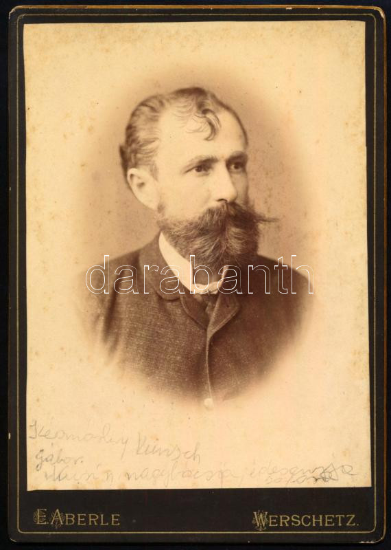 cca 1880 késmárki Kunsch Gábor, Abaúj vármegye alispánjának portréja, kabinetfotó Emil Aberle verseci (Werschetz, Vršac) műterméből, feliratozva, 16x11,5 cm