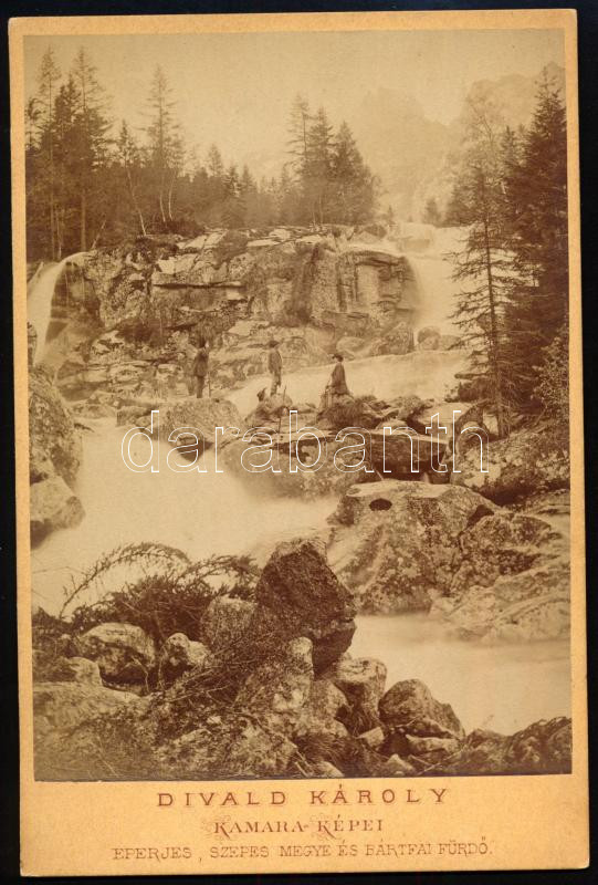 cca 1890 Tátra, vízesés, keményhátú fotó Divald Károly műterméből, 16,5×10,5 cm / Vysoké Tatr, waterfall