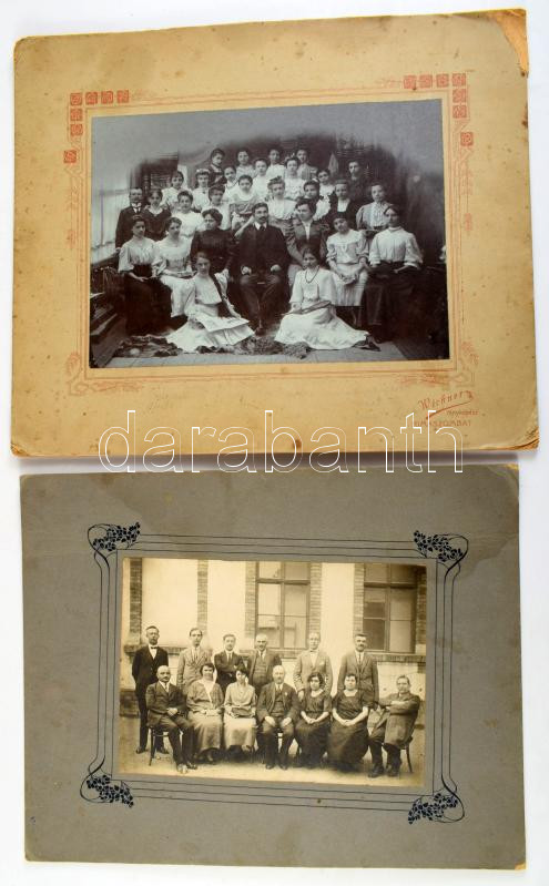 cca 1900-1910 Iskolai csoportképek, közte rimaszombati polgári leányiskola IV. osztályos növendékei (aláírásokkal), 4 db kartonra kasírozott fotó, változó állapotban, max. 25x31 cm