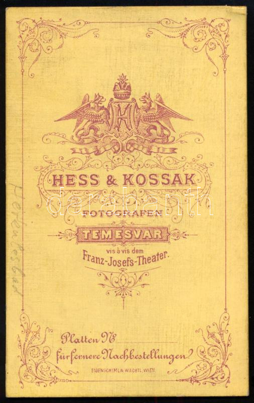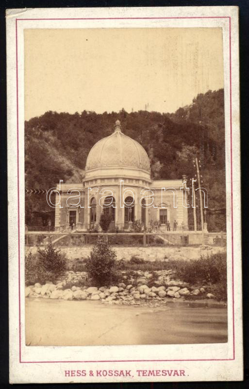 cca 1900 Herkulesfürdő, keményhátú fotó Hess & Kossak temesvári műterméből, 10,5×6,5 cm / Baile Herculeane