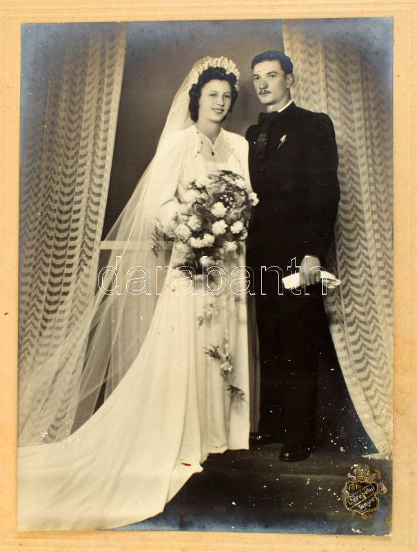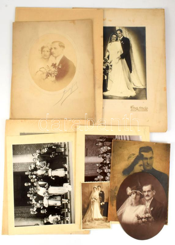 cca 1910-1945 Régi esküvői fotók, összesen 9 db, változó állapotban, 13,5x8,5 cm és 40x30 cm között