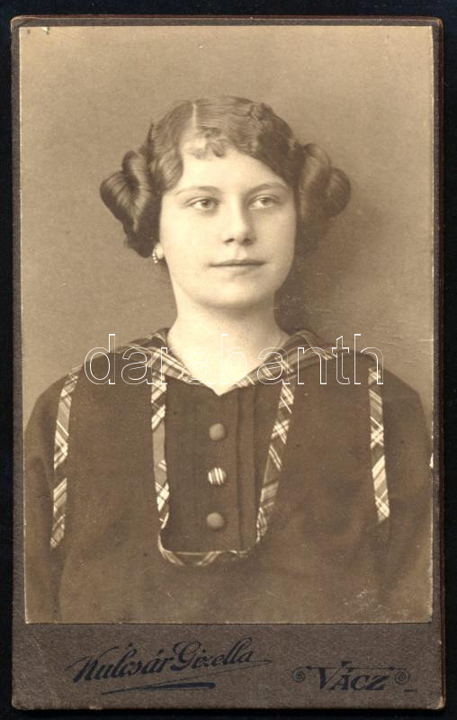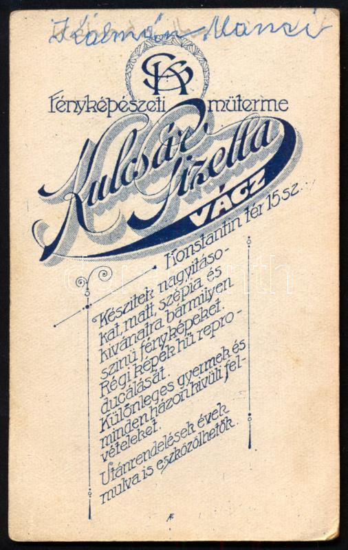 cca 1910 Fiatal lány portréja, vizitkártya Kulcsár Gizella váci műterméből, 10,5x6,5 cm (Ritka!)