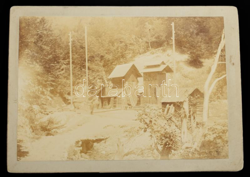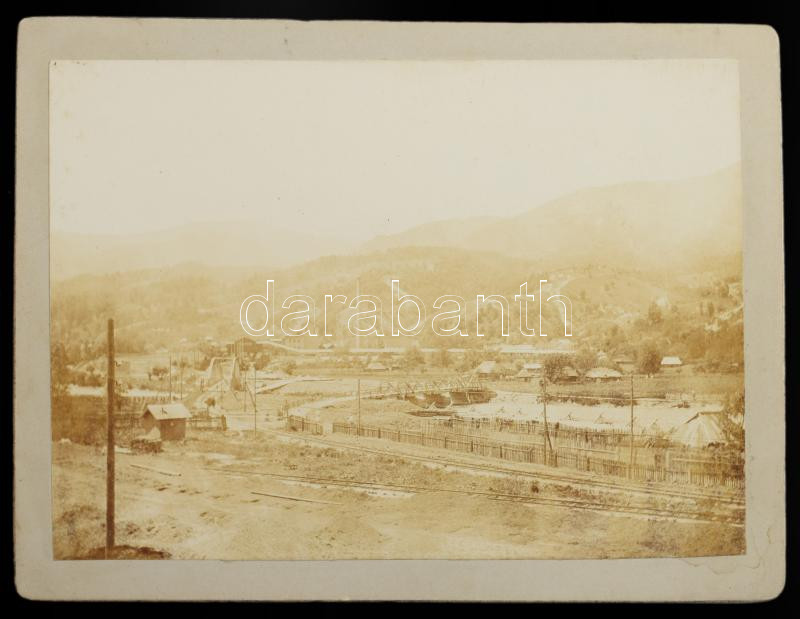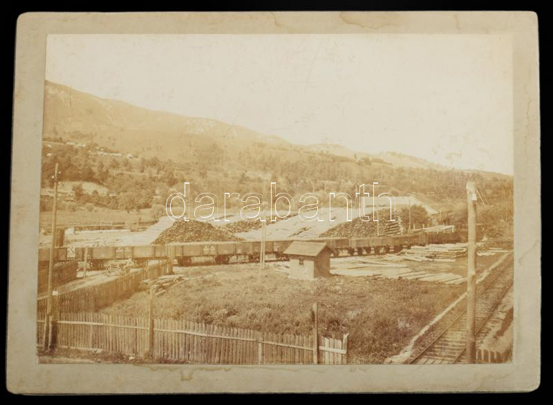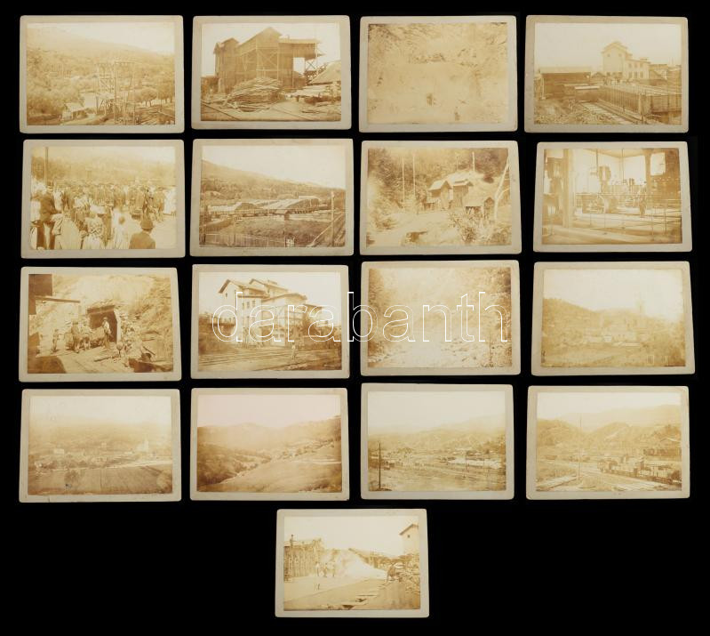 cca 1910 Lupény, Erdély, vasúti híd, vasútállomás, fatelep, templom, bányabejárat, stb., Adler Mór, 17 db keményhátú fotó, 13×18 cm / Lupeni, Romania, 17 vintage photos