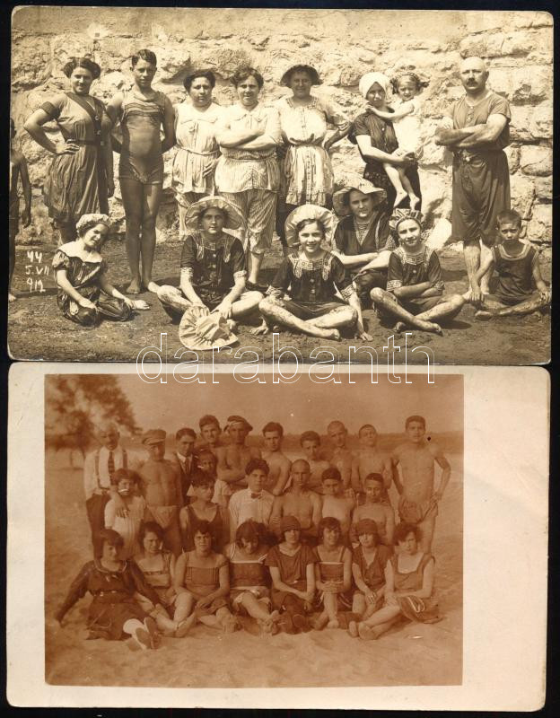 cca 1912-1920 Fürdőzők csoportképe, 2 db fotólap, 9×14 cm