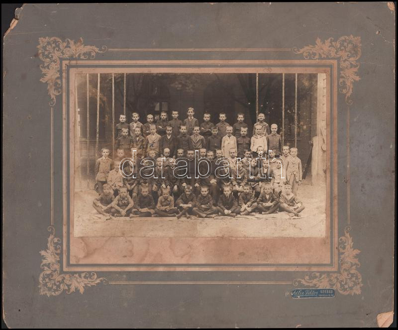 cca 1913-1933 Szeged, iskolai csoportképek, az egyiken katonai egyenruhát viselő fiúkkal, 2 db nagyméretű, kartonra kasírozott fotó, sérülésekkel, foltokkal, 30x35,5 cm-ig