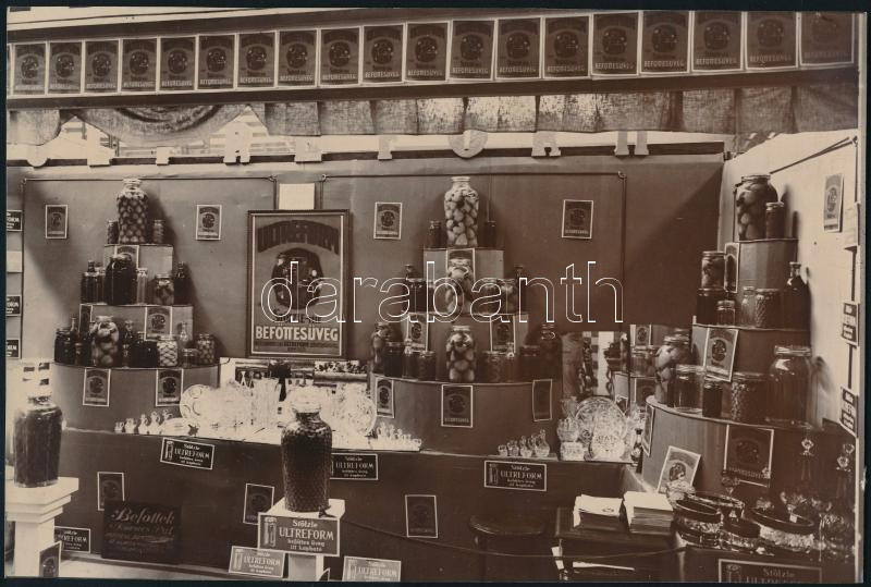 cca 1930 Stölzle-féle befőttesüveg kiállítási standjának fotója, 15×22,5 cm