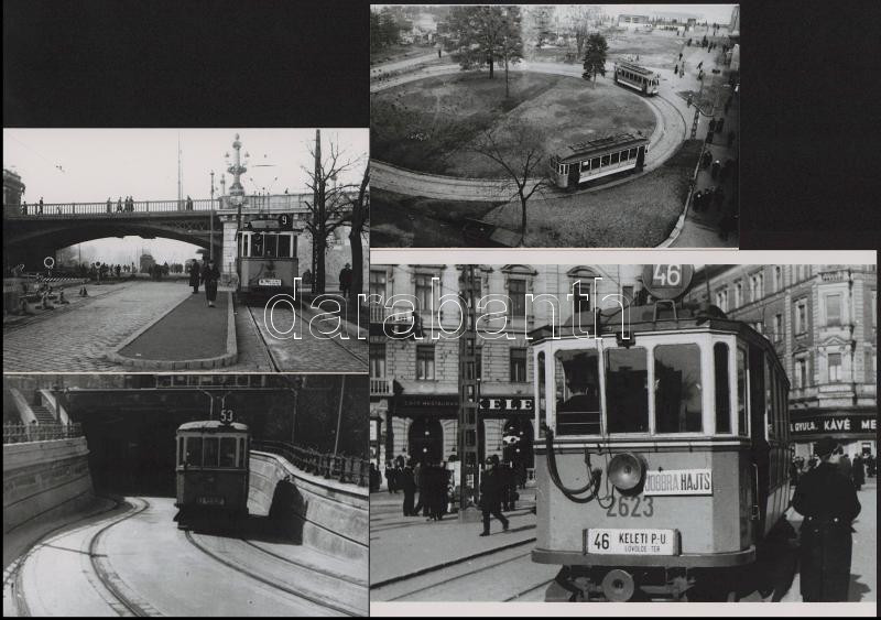 cca 1950 előtt készült felvételek a budapesti villamosokról (9, 46, 53), 4 db modern nagyítás jelzés nélkül, 15x21 cm és 10x15 cm