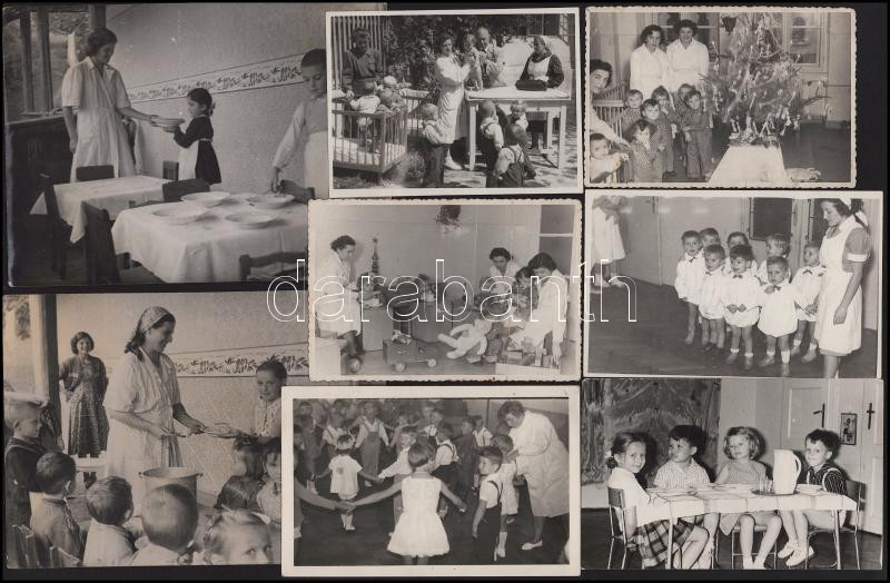 cca 1960 Óvodai témájú vegyes fotó tétel, 17 db, 6,5×6,5 és 13×18 cm közötti méretekben