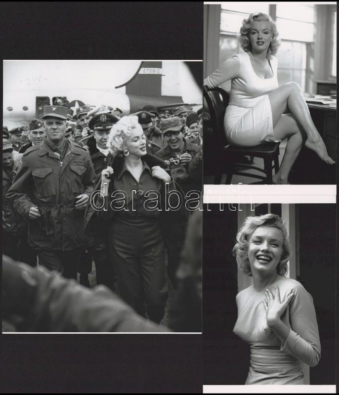 cca 1960 előtt készült felvételek Marilyn Monroe (korábban Norma Jeane) (1926-1962) amerikai színésznőről és fotómodellről, 3 db modern nagyítás, jelzés nélkül, 21x15 cm
