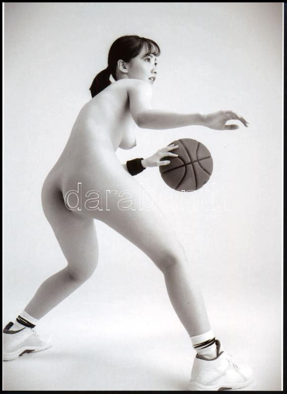 cca 1987 "Profi kosaras és profi aktmodell", szolidan erotikus felvétel, 1 db modern nagyítás, jelzés nélkül, 21x15 cm