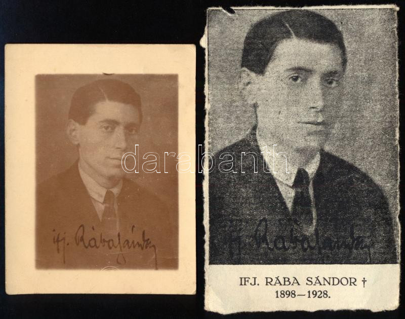 ifj. Rába Sándor (1898-1928) költő fényképe, rajta aláírásával, 9x6,5 cm + egy őt ábrázoló kivágás (újságból/gyászjelentésről)