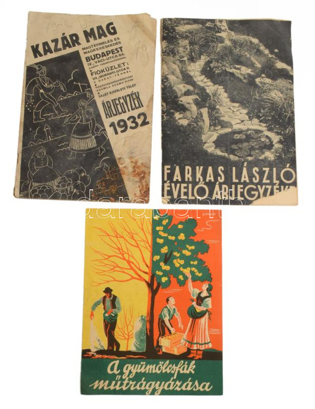 cca 1930-1940 3 db kertészeti prospektus és árjegyzék, változó állapotban, részben sérült, foltos
