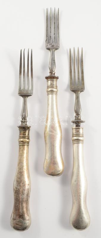 3 darab ezüst (Ag) nyelű villa, jelzett, bruttó 210g