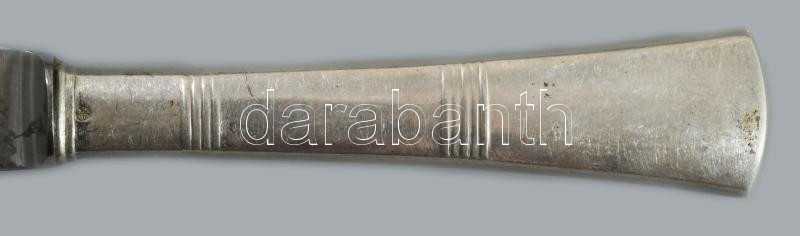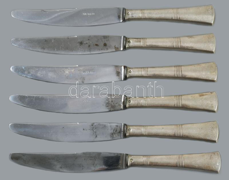 6 darab ezüst (Ag) nyelű kés, jelzett, Bécs, 1872-1922, 800 ezrelékes ezüst, h: 25 cm