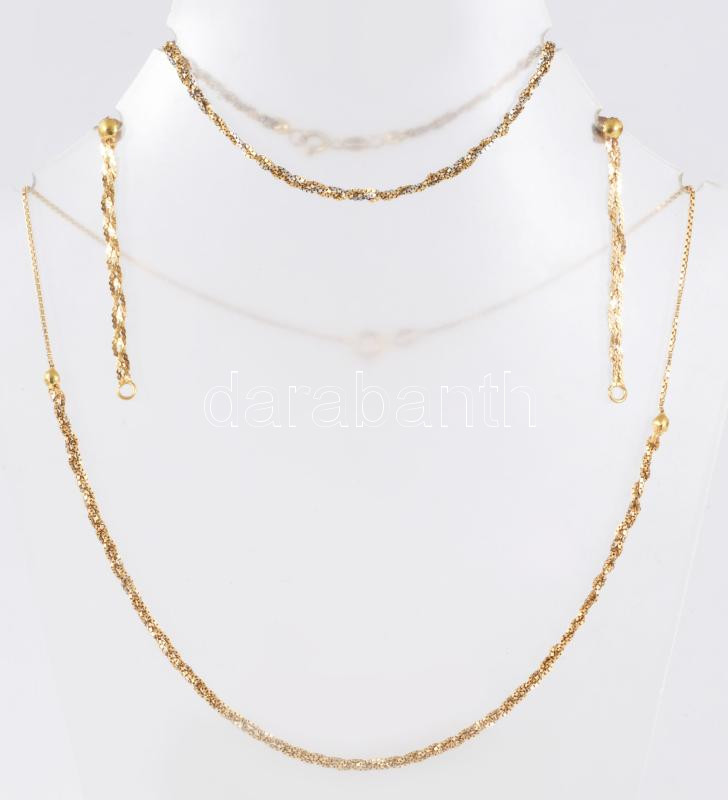 Arany (Au) ékszer szett: nyaklánc, karlánc, fülbevaló pár. jelzett, 18K,11,7g