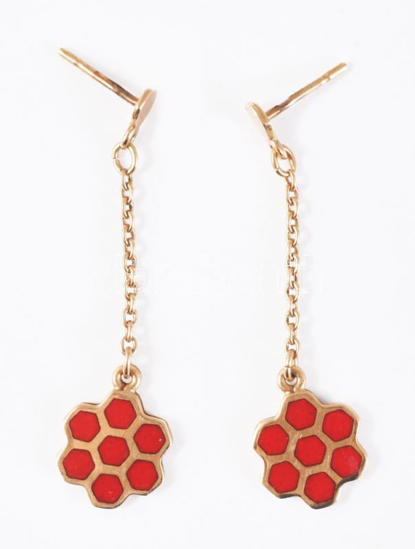 Arany (Au) fülbevaló pár, szorítók nélkül, kővel, jelzett, bruttó 2,76g