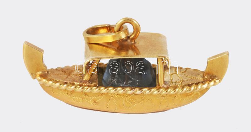 Arany (Au) gondola medál, benne kővel, 18K, jelzett, bruttó 6,1g