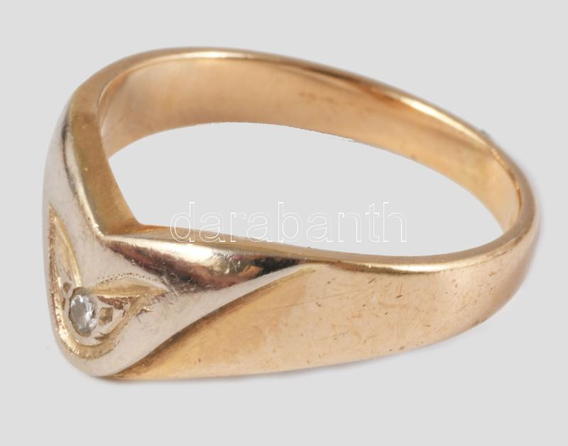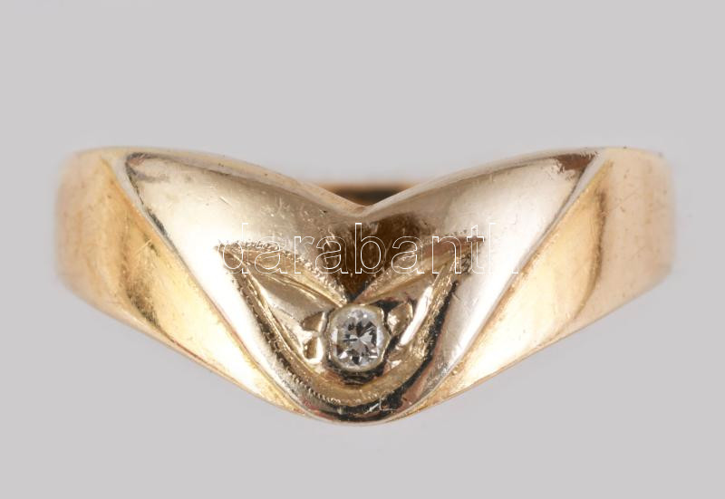 Arany (Au) gyűrű, jelzett, 14K, brillel, m: 49, bruttó 3,24g