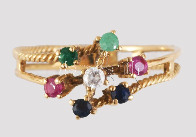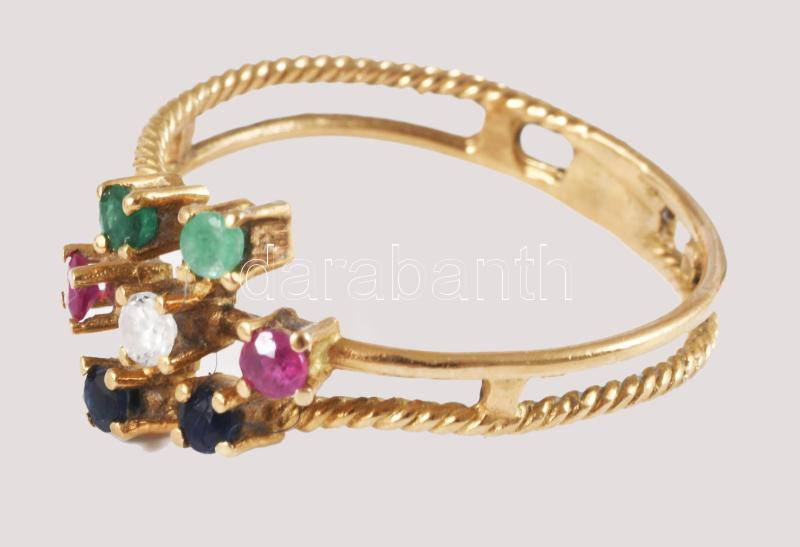 Arany (Au) gyűrű, kövekkel, jelzett, 18K, m:52, bruttó 1,89g