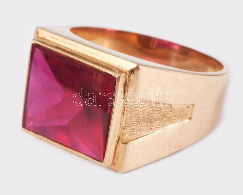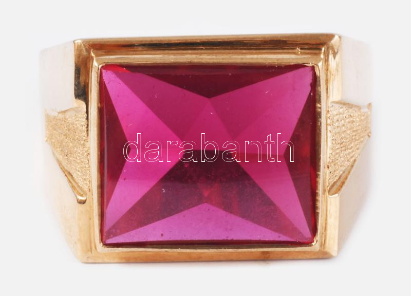 Arany (Au) gyűrű, kővel, jelzett, 14K, m:64, bruttó 13,1g