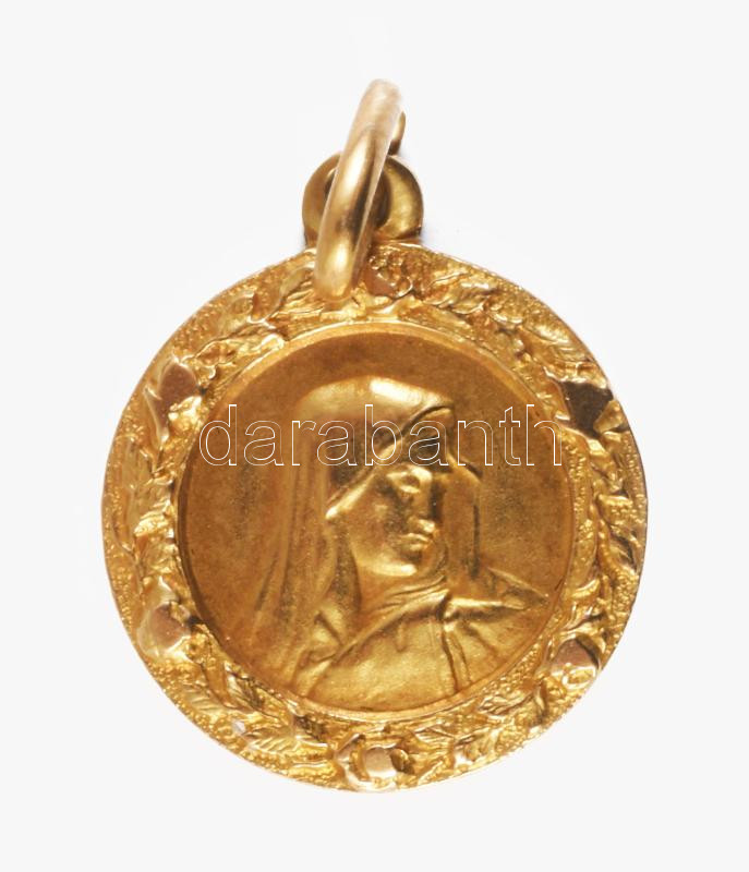 Arany (Au) medál Szűz Mária képével, 18K, jelzett, 1,79g