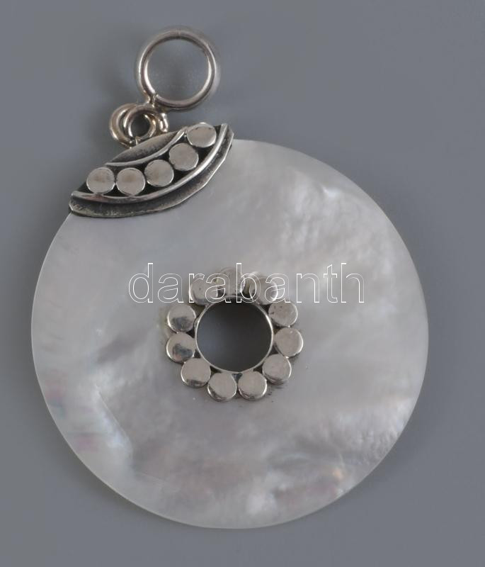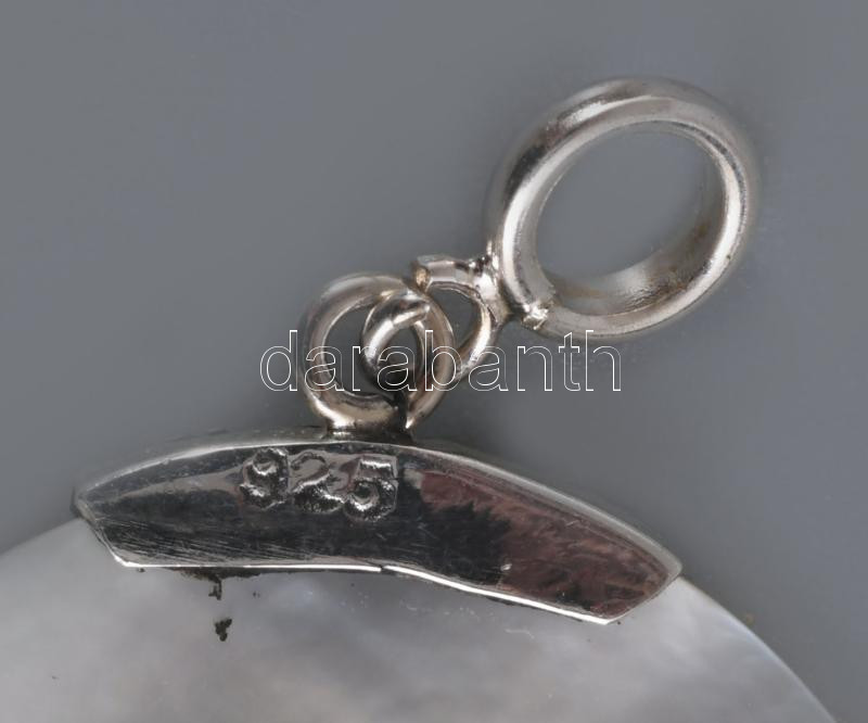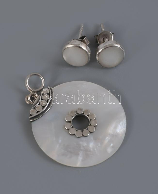 Ezüst (Ag) fülbevaló pár és medál, gyöngyházzal, jelzett, bruttó 3,8g