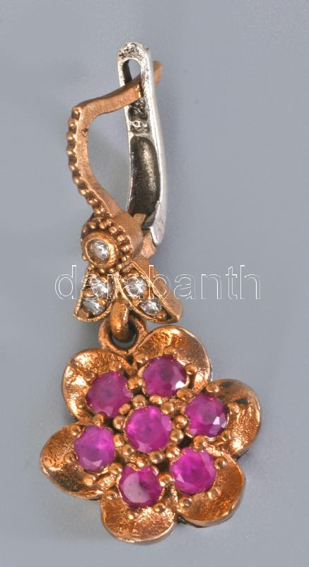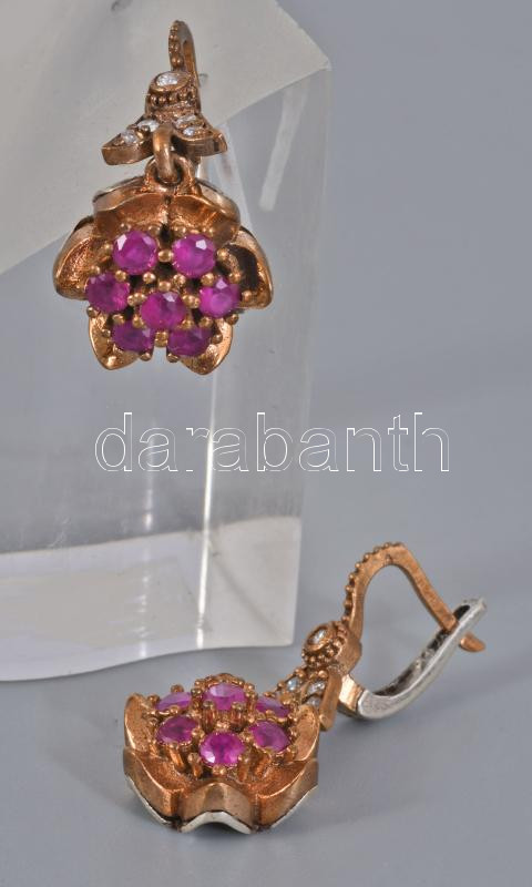 Ezüst (Ag) fülbevaló pár, szintetikus rubinnal, bruttó 9,4g