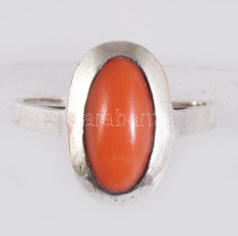 Ezüst (Ag) gyűrű csiszolt korall berakással, m.55, bruttó 3g