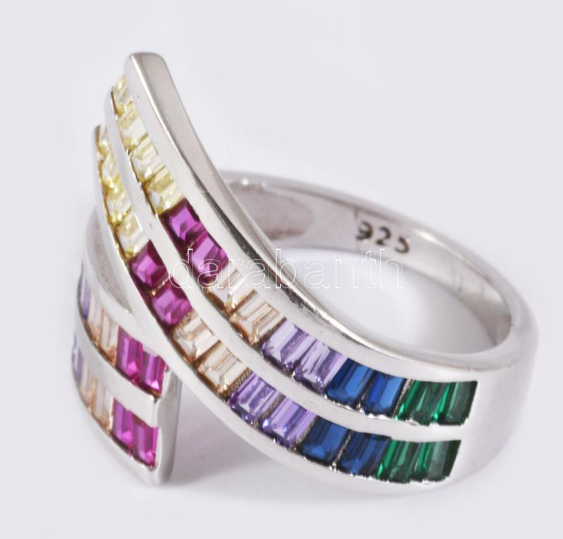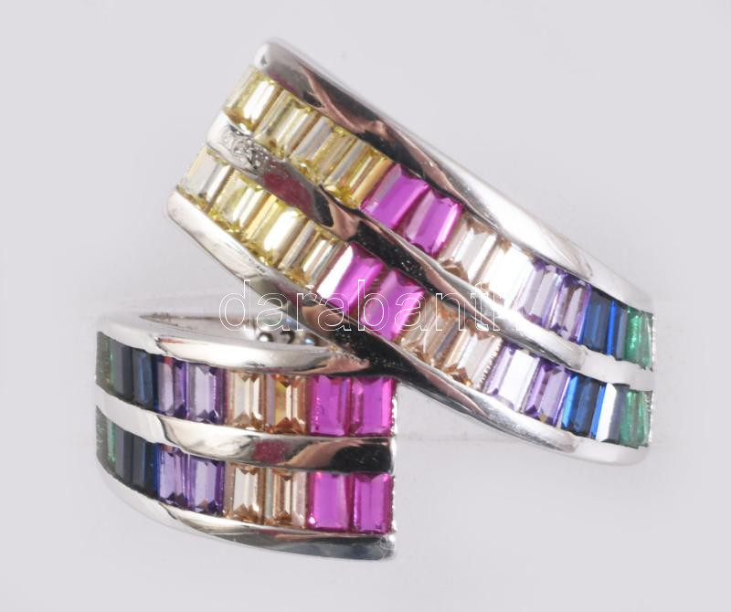 Ezüst (Ag) gyűrű, csiszolt színes kő berakásokkal, m.53, bruttó 3,6g