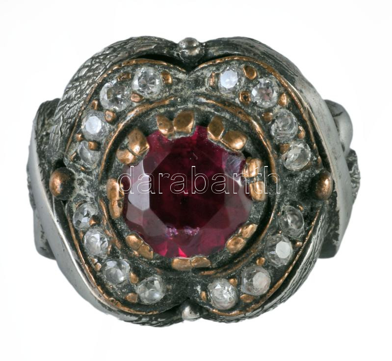 Ezüst (Ag) gyűrű, szintetikus rubinnal, j.n., m: 53, bruttó 12,4g