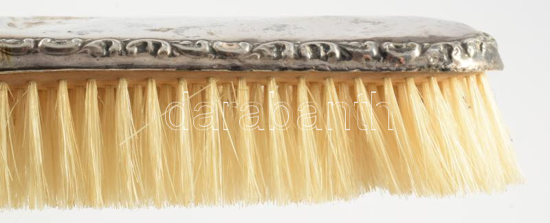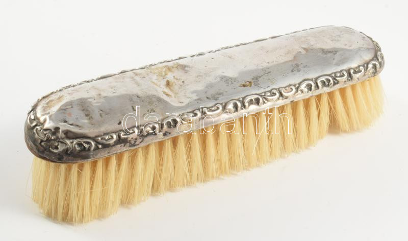 Ezüst (Ag) lemezzel burkolt kefe, jelzett, h: 17 cm