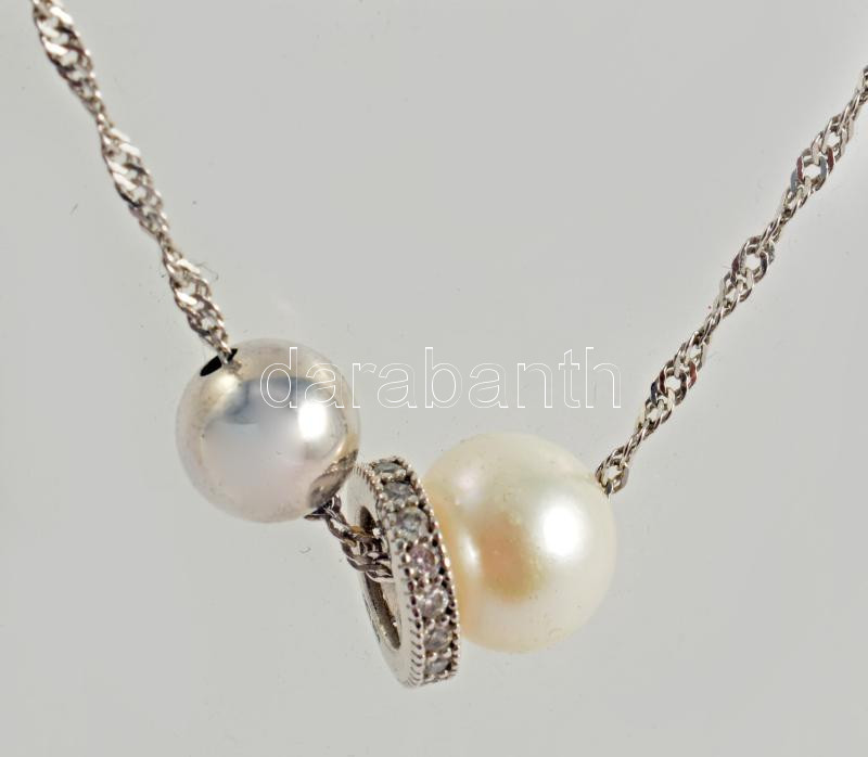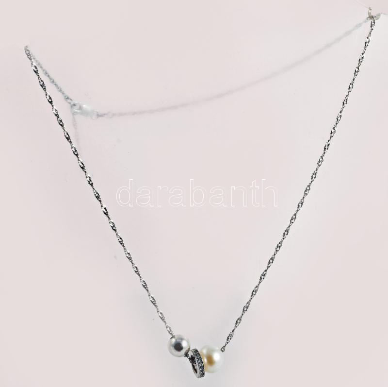 Ezüst (Ag) nyaklánc édesvízi gyönggyel, jelzett, bruttó 4,7g