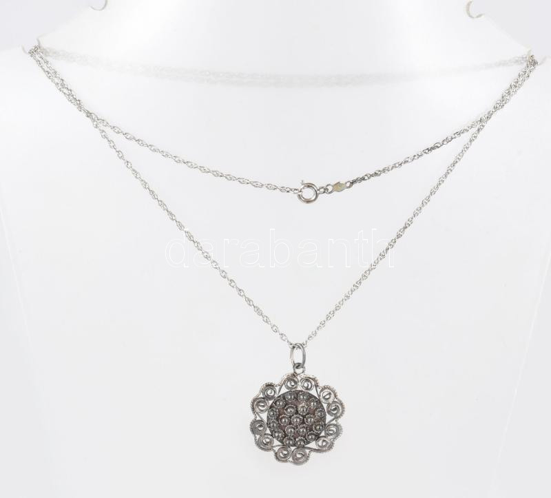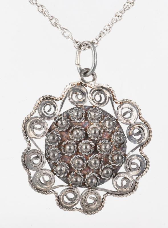 Ezüst(Ag) filigrán medál nyaklánccal, jelzett, h: 60 cm, d: 2,5 cm, 6,3 g