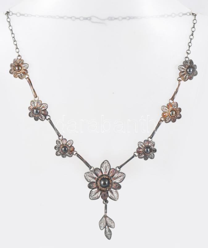 Ezüst(Ag) filigrán nyakék, jelzés nélkül, h: 37 cm, 16,3 g