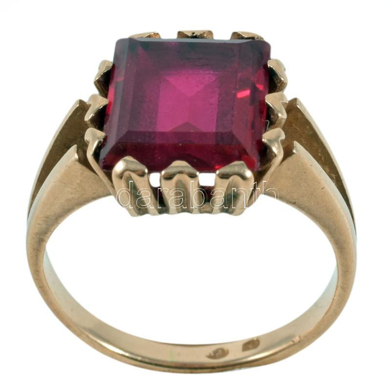 Szoliter gyűrű szintetikus rubinnal 14K jelzett br 5,19 g m: 51