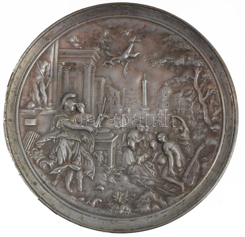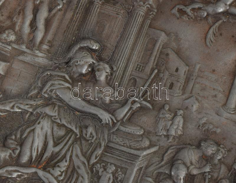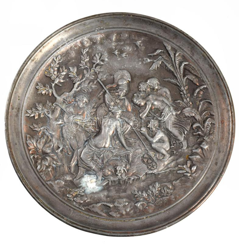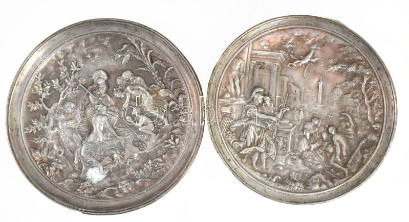 2 darab antik zinezett bronz dísztál, d: 25,5 cm
