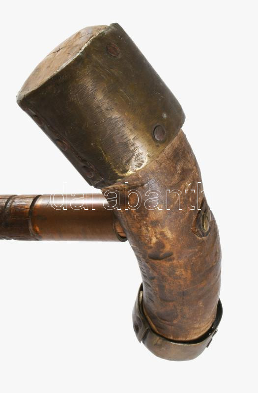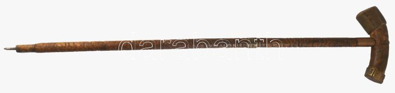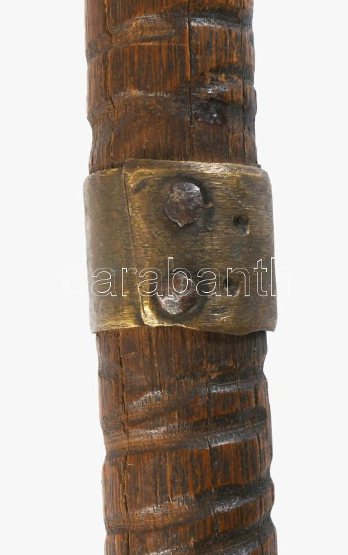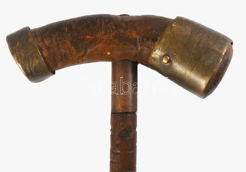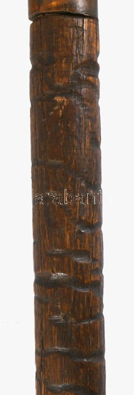Antik faragott fa sétabot, réz szerelékkel, h. 88 cm