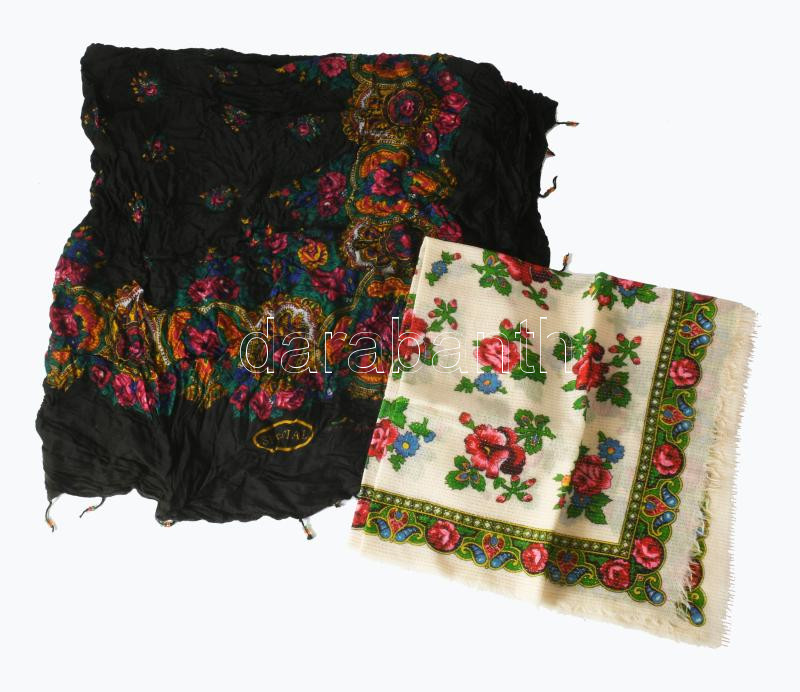 2 darab kendő, közte fekete rózsás Cashmina, 115x115 cm, 62x62 cm