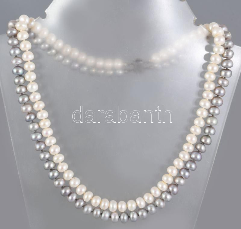 Duplasoros tenyésztett gyöngy nyaklánc, ezüst (Ag) szerelékkel, h. 47 cm
