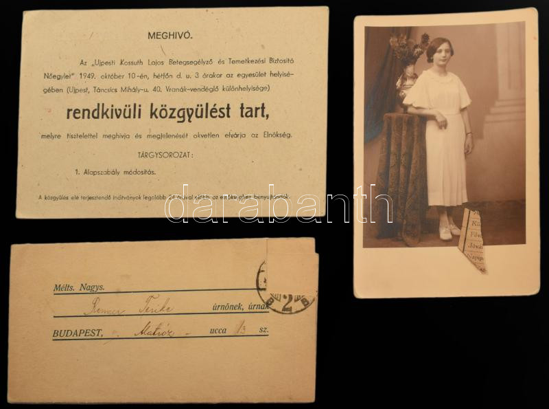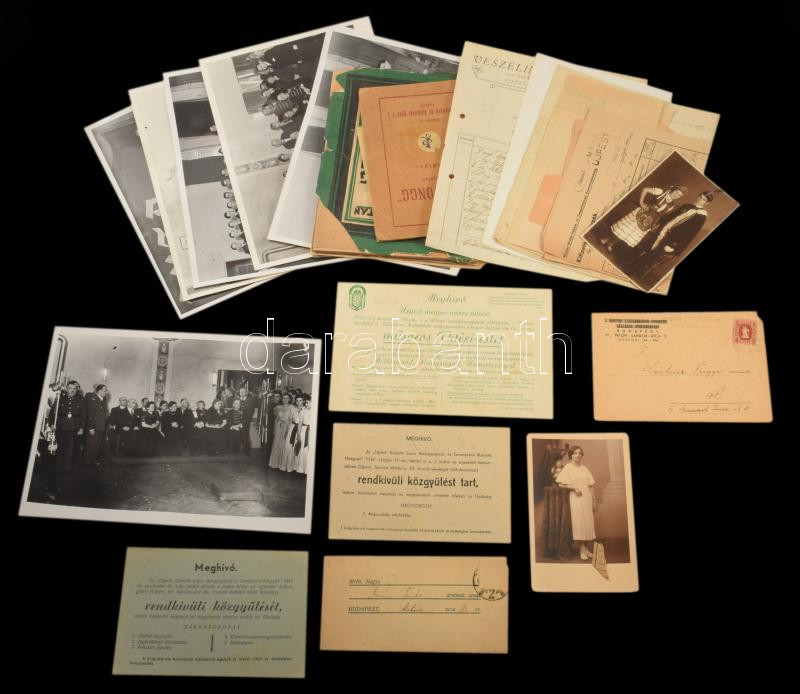 ca 1900-1940 Ujpesti vonatkozású dokumentumok gyűjteménye számlák, fejléces borítékok, reklámok, helyi báli fotók, stb