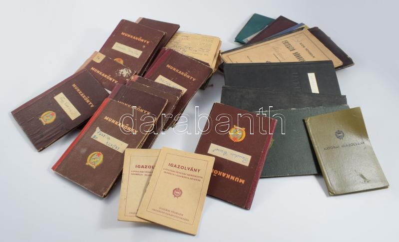 ca 1940-1980 31 db vegyes igazolvány, közötte katonai, munkás, közötte háború előttiek is, stb, hozzá néhány szocreál oklevél, stb.