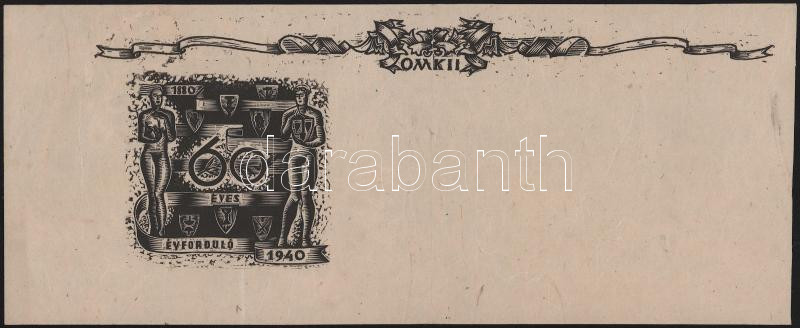 1940 Az Országos Magyar Képzőművészeti Iskola 60 éves évfordulójára készült grafika. 38x15 cm Linómetszet