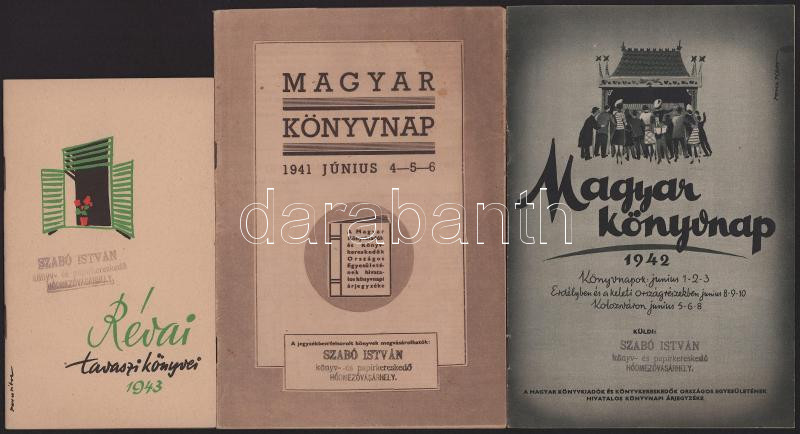 1941-1944 5 db könyvjegyzék - Révai tavaszi könyvei, Magyar könyvnap, Dante Könyvnap, XV. Magyar Könyvnap, stb.