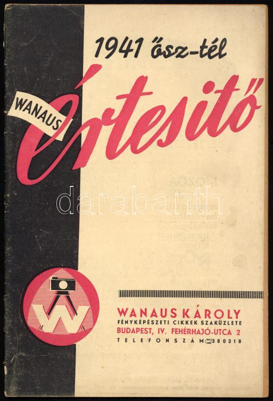 1941 Wanaus Értesítő - Wanaus Károly Fényképészeti Cikkek Szaküzlete prospektus, 16p