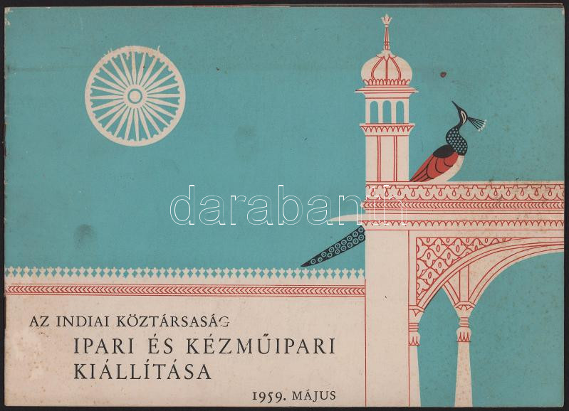 1959 Az Indiai Köztársaság ipari és kézműipari kiállítása a Magyar Kereskedelmi Kamara kiállítási termeiben, Budapest, 1959. május. Kiadói tűzött papírkötés, kissé foltos borítóval, 16 p.