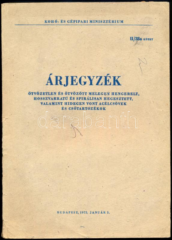 1972 Bp., Kohó- és Gépipari Minisztérium árjegyzéke II/38a kötet, gerinc szakadt, 191p
