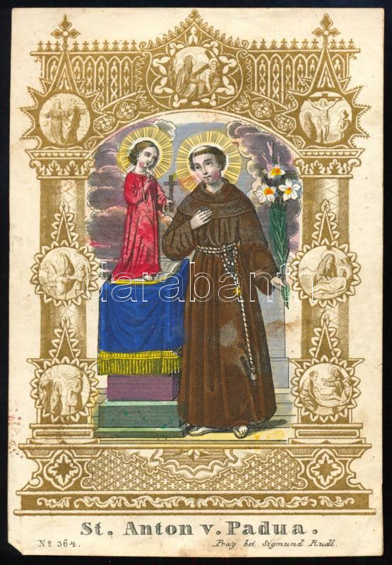 ca 1870 Pádovai Szent Antal litografált szentkép. 8x12 cm